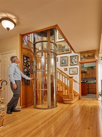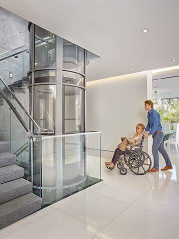 Ideal for new and existing homes due to the minimal space required to accommodate the elevator.